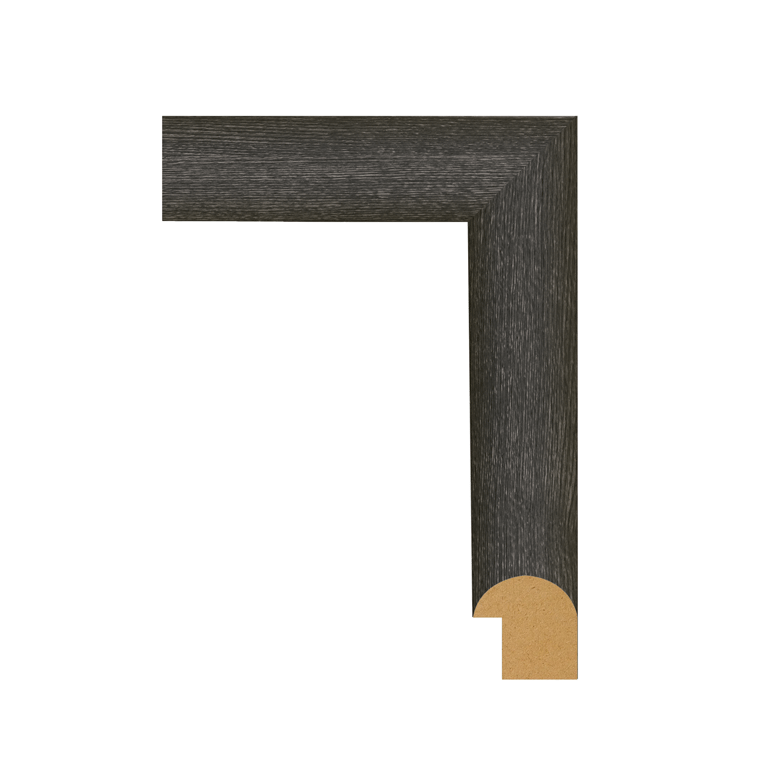 Add bold elegance to any space with Restoration Black Oak moulding. Featuring a deep, rich black oak finish with subtle grain textures, this versatile trim enhances both modern and classic interiors. Ideal for baseboards, casings, stair nosing, and transition mouldings, it provides a seamless, polished look that complements dark floors and contemporary designs. Crafted for durability, Restoration Black Oak resists scratches, scuffs, and everyday wear, ensuring lasting beauty in high-traffic areas. Easy to install and low-maintenance, it’s the perfect choice for homeowners and professionals seeking style, performance, and timeless sophistication in one refined profile. This round moulding has a 1″ wide face, a 1″ high profile and a 5/8″ rabbet.